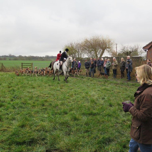 The North Staffordshire Hunt met on New Year's Day 2019, in the paddock in the centre of Norton in Hales with a Field of around 50 riders and a good crowd of hunt supporters from the village and nearby. Field Master for the day was Mrs Emily Jarrett, wife of Jonathan Jarrett, Master of Foxhounds (MFH) who thanked everyone for attending and particularly thanked the Car Followers who had provided the refreshments, as the Hinds Head was closed for the day. The Hunt moved away shortly after 11am to commence their day's trail hunting.